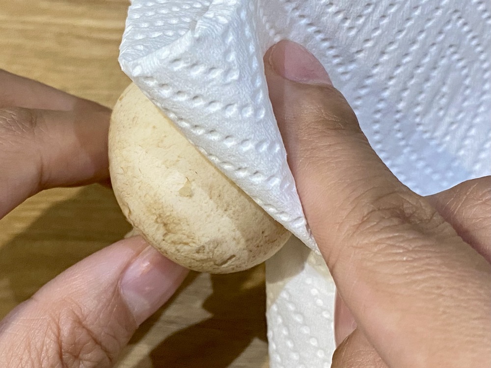 2.マッシュルームが汚れている場合は、キッチンペーパーで拭く