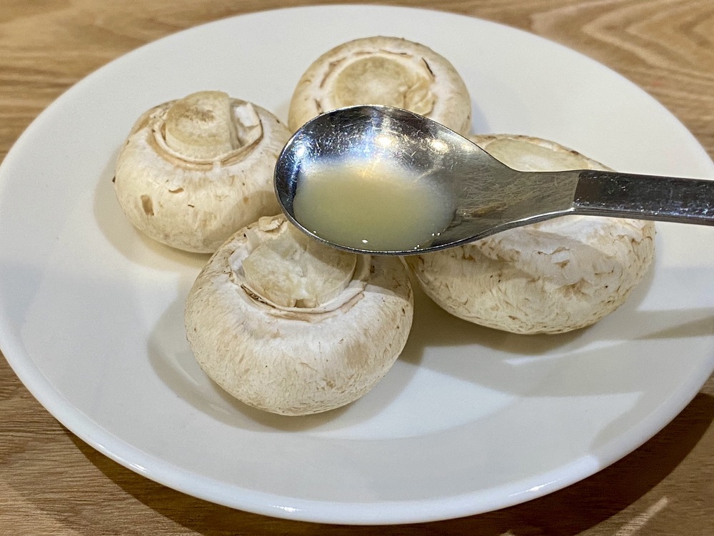 3.マッシュルームの切り口にレモン汁をかける