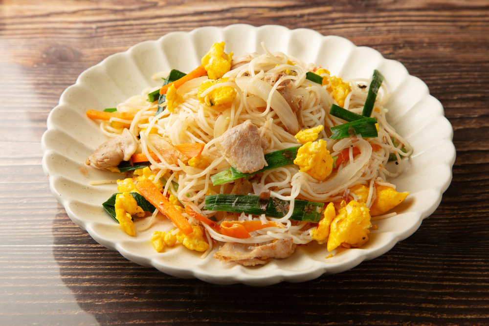 普通は麺つゆでさっぱりと食べられるそうめんですが、具材と一緒に油で炒めると満足感のある一品に変わります。野菜と肉が入っていて食べ盛りの子供の栄養補給にも適しています。