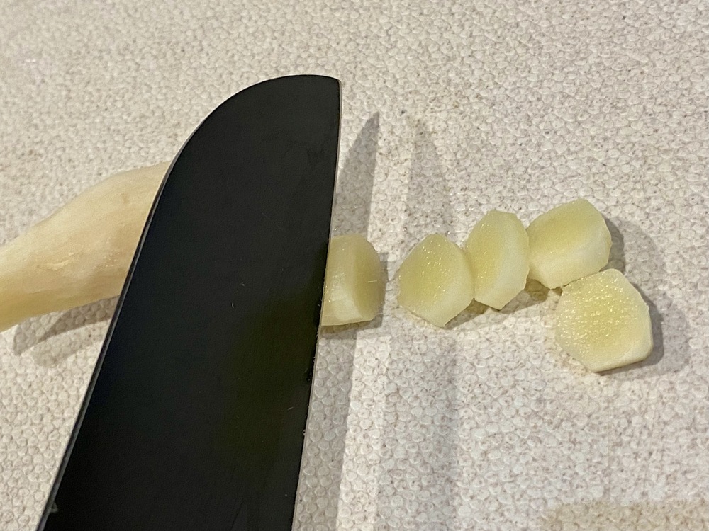 1.表面の硬い部分や黒く変色した部分を切り落とす