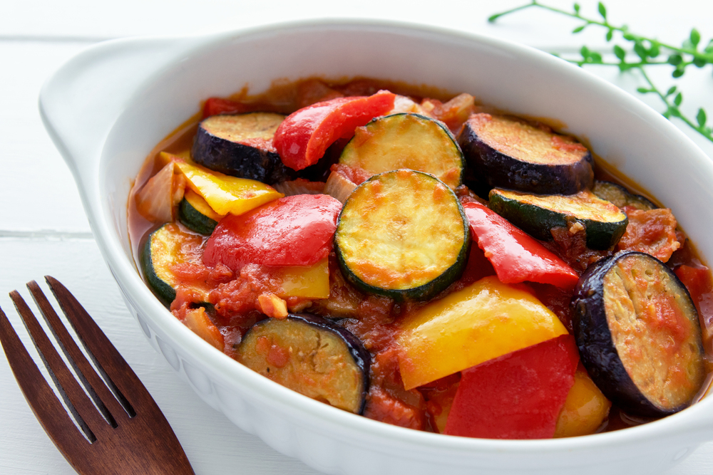 煮込んだ野菜の旨味が際立つラタトゥイユのレシピです。野菜をふんだんに使っているのでビタミンが豊富に含まれており、夜食や小腹が空いたときにも最適な料理です。
