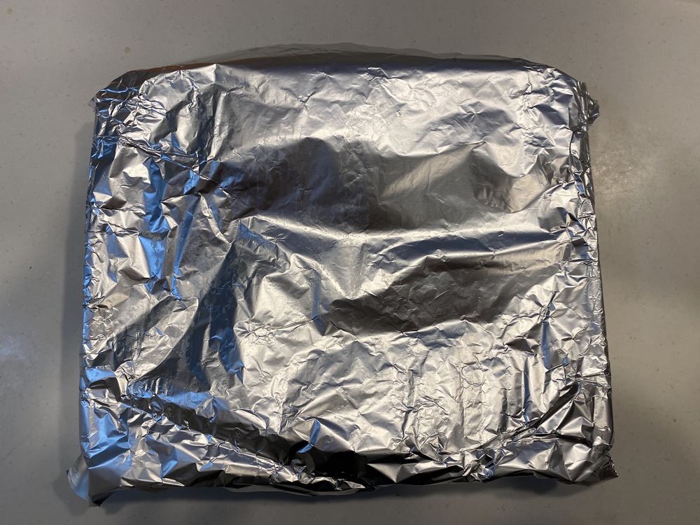 3.食塩水とはまぐりが入った容器に、アルミホイルを被せる