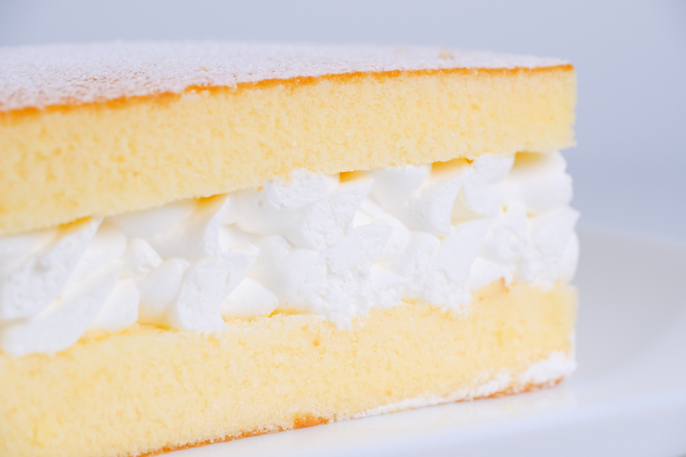 生クリームの濃厚さがカステラの弾力ある生地と良く合い、贅沢な味わいを楽しめます。カステラの厚みと生クリームの量は、お好みで調整してください。バナナ、いちごなどフルーツを薄切りにしてサンドするとアレンジが楽しめます。