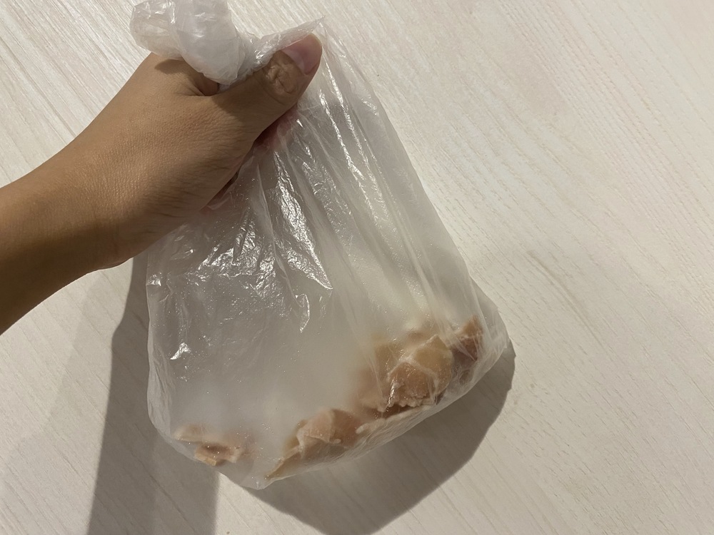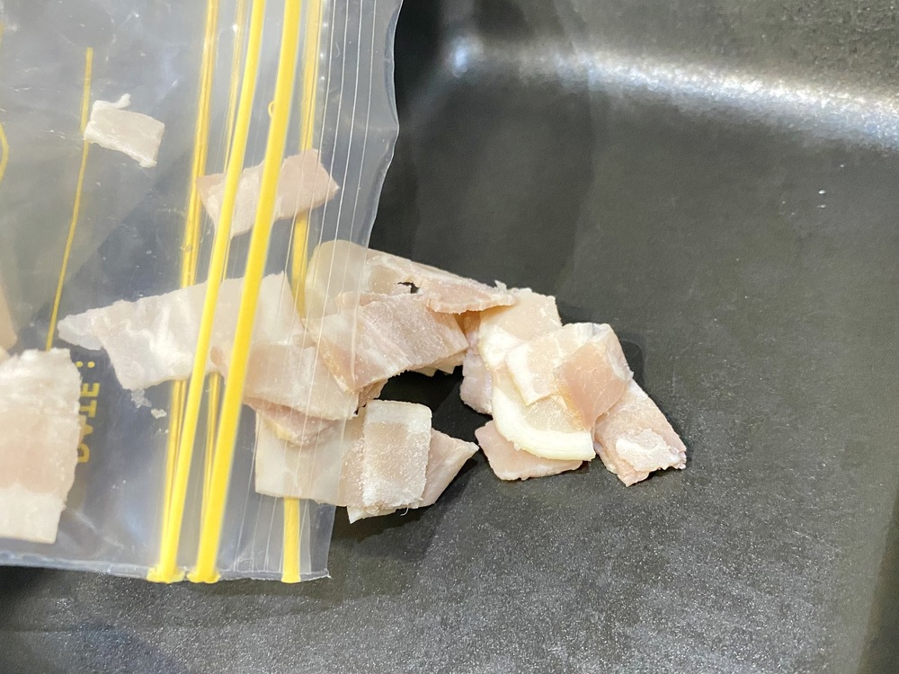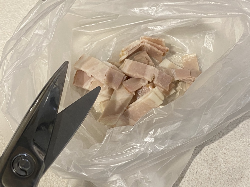 1.使いやすい大きさにベーコンを切り、ポリ袋に入れる