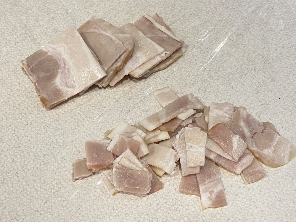 1.使う料理に合わせて、使いやすい大きさにベーコンを切る