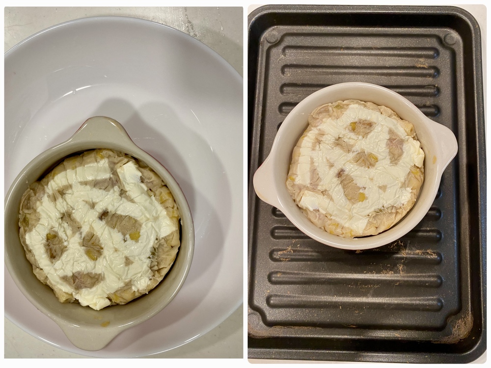 5.耐熱皿に入れ、トースター1000wで10分焼く