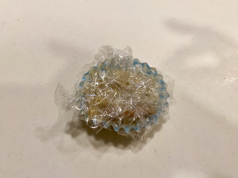3.ひとつずつ空気が入らないように、アルミカップやアルミ皿をラップで包む