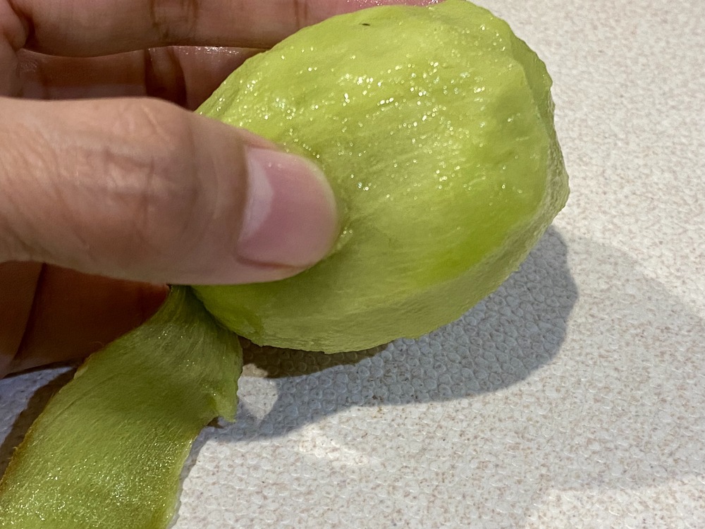 1.冷凍キウイフルーツを水で濡らし皮をむく