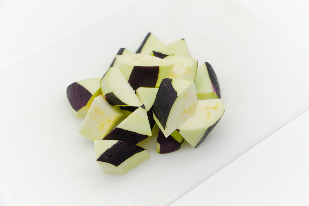 1.料理や用途に合わせてなすを小さくカットし、全体的に水につけておく