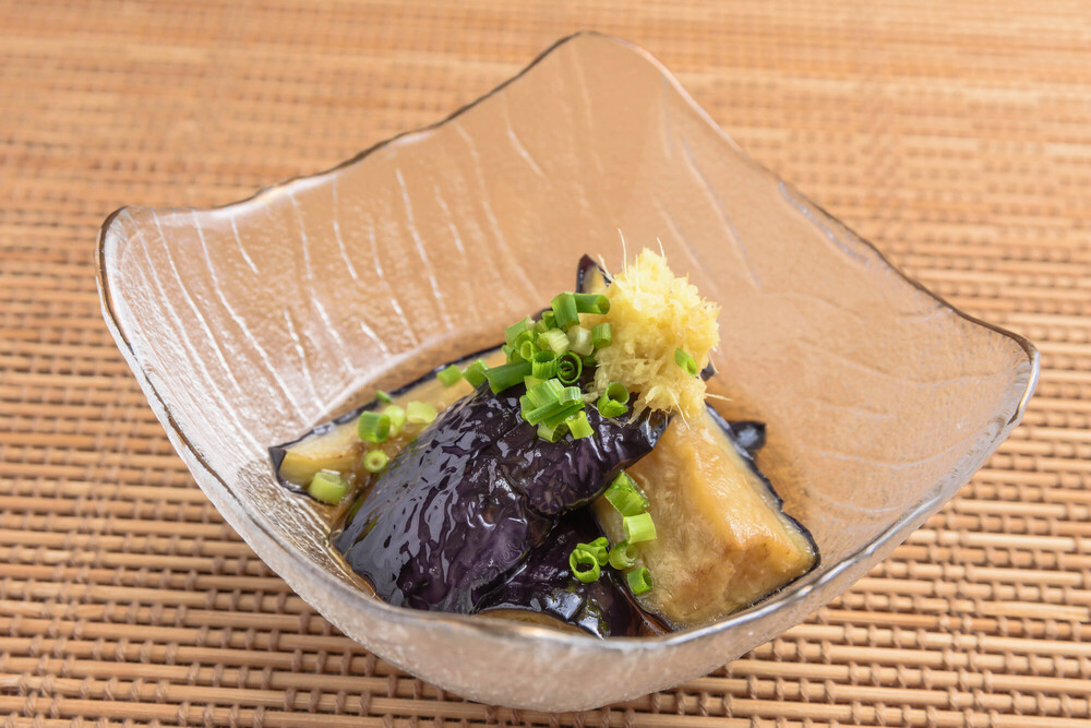 生姜とかつお節の深い香りが広がる、なすの素材を生かした王道料理です。しょうゆをポン酢で代用するとさっぱりとした味わいになるので、夏の暑い時期に食べやすく食欲が進みます。