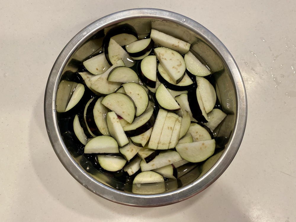 2.カットしたなすを10分ほど水に浸す