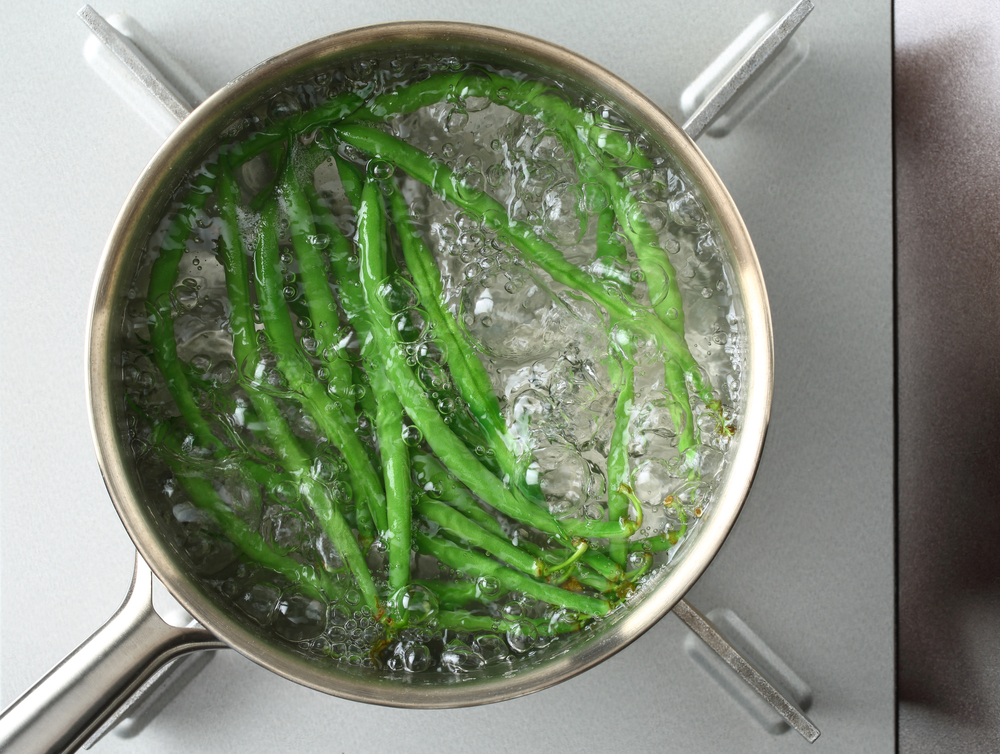 1.お湯を沸騰させ、冷凍いんげんを茹でる