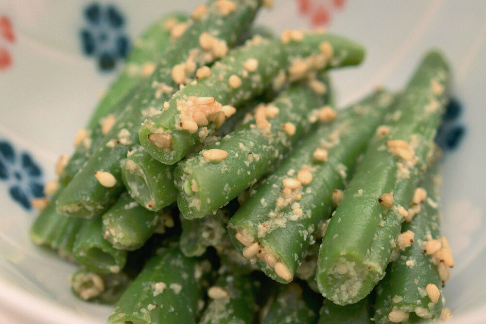 - ①冷凍いんげんの胡麻和え