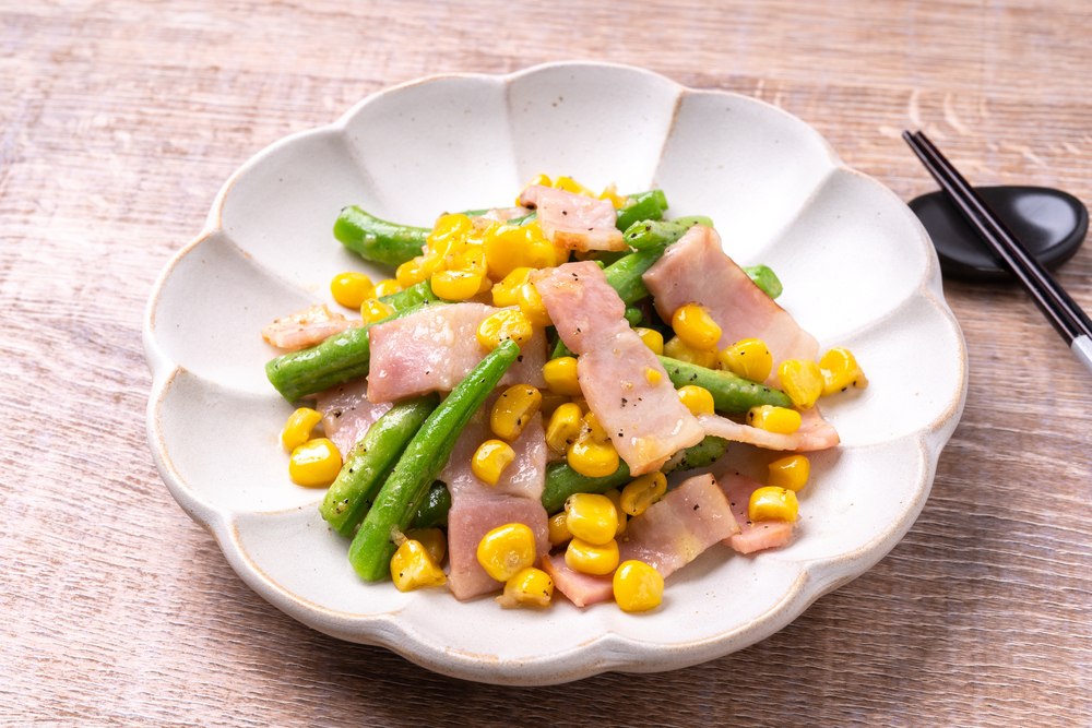 ②いんげんとコーンのベーコン炒め|日持ち:約2週間