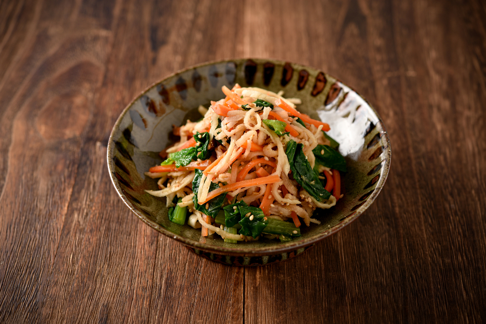 煮物としてのイメージが強い食材ですが、切り干し大根の歯ごたえを活かした食べ方もあります。サラダのような食べ方であれば、火を使わない調理も可能です。冷凍の切り干し大根を使って手軽に作れるアレンジレシピを3つ紹介します。