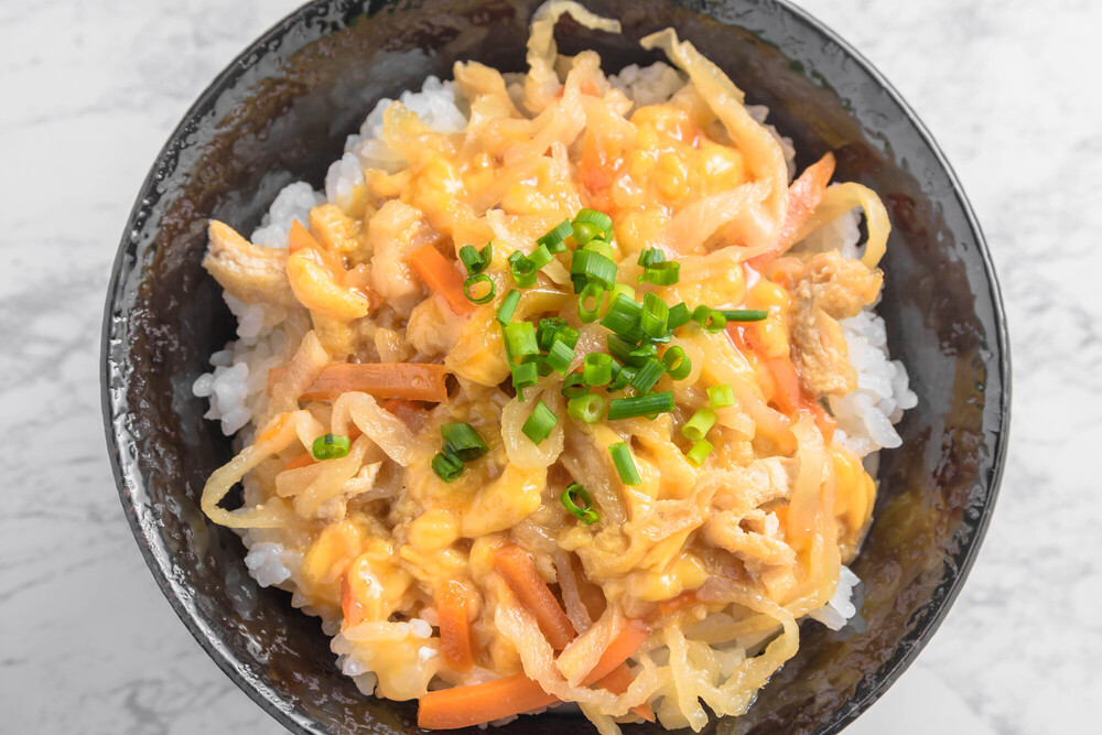 電子レンジだけで調理できる手軽な一品です。ご飯の上に乗せれば、簡単にどんぶりが完成します。