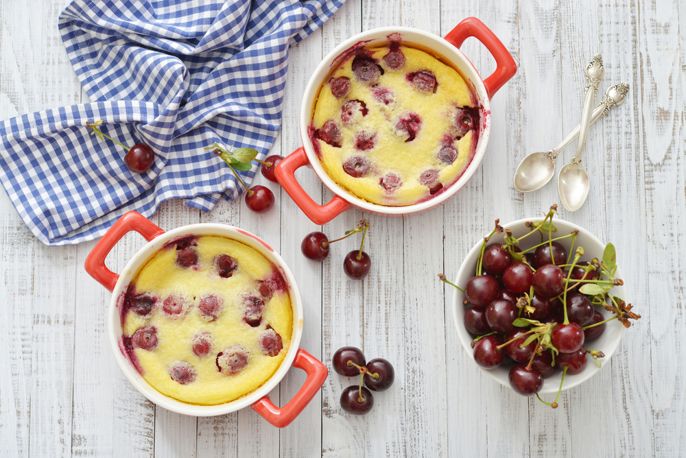 フランスの洋菓子として有名なクラフティは、卵と牛乳がベースの手軽なデザートです。さくらんぼ以外の果物でも作れるので、果物が余ったときの消費にも役立つレシピです。