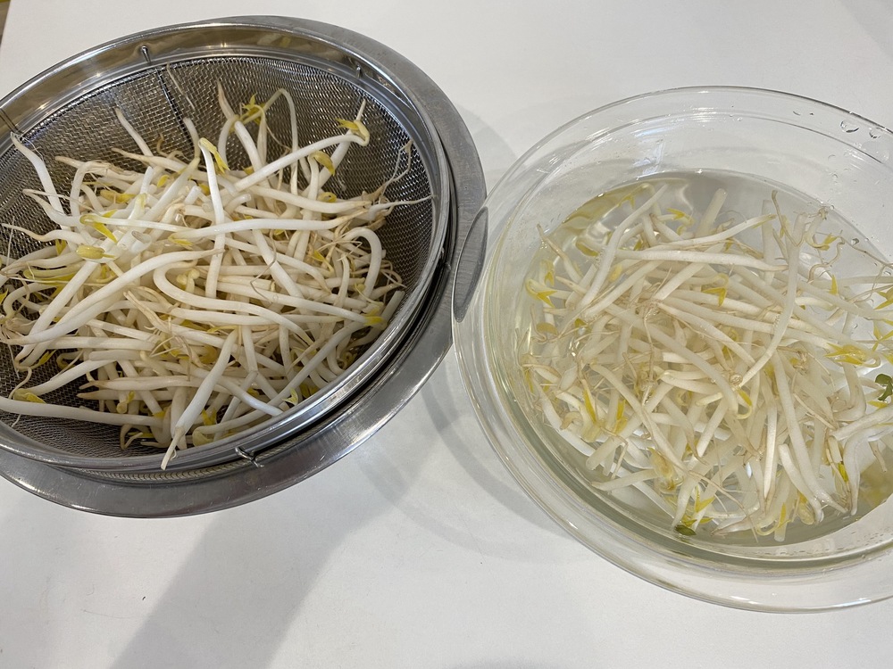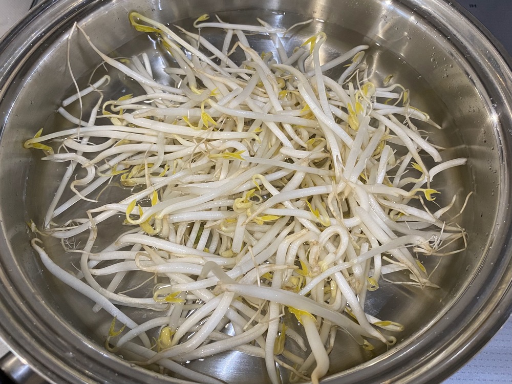 1.鍋にお湯を沸かし、生のもやしを入れて30秒〜1分ほど茹でる