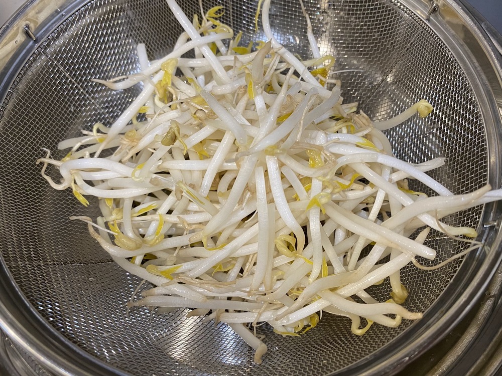 3.茹でたもやしの水気をしっかりと切る