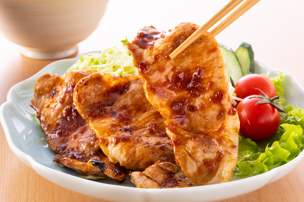豚肉はなるべく重ならないようにフライパンに並べ、しっかり焼くのがポイントです。すりおろしと刻みの生姜を使うことで香りと食感が引き立ちます。付け合わせにキャベツやトマトを添えると彩りもよく、栄養バランスも整います。