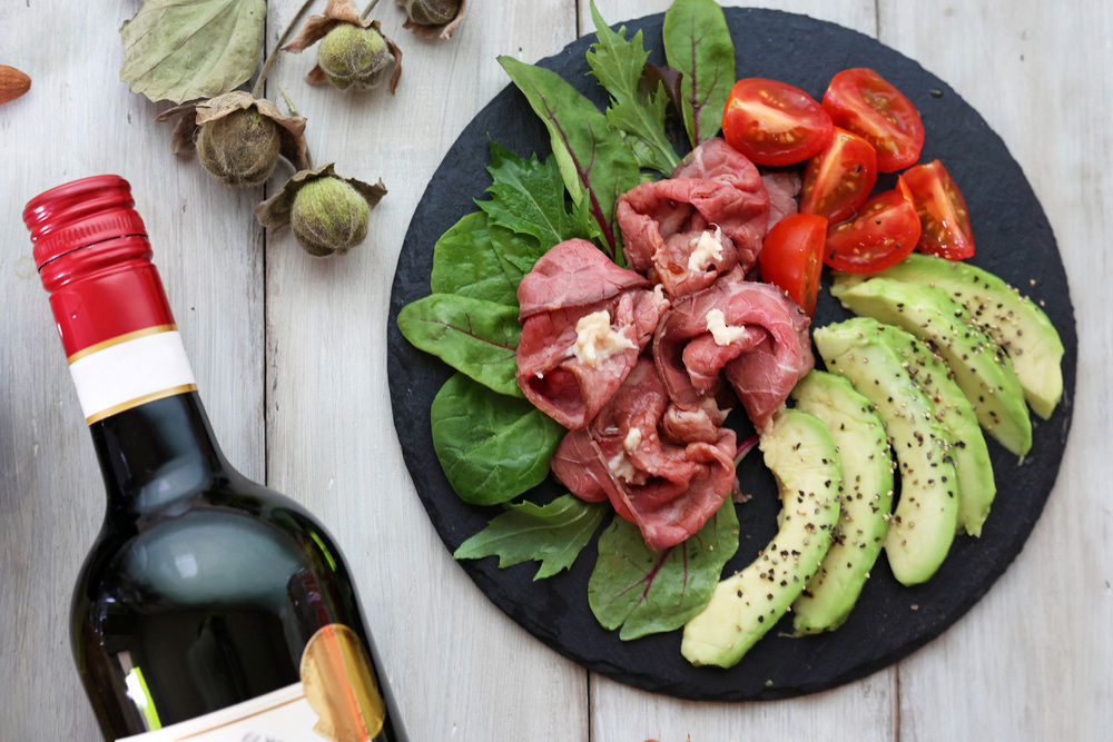 ローストビーフとアボカドを使用したサラダの作り方を紹介します。