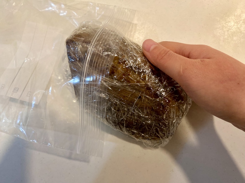 2.ラップに包んでチャック付き袋に入れる