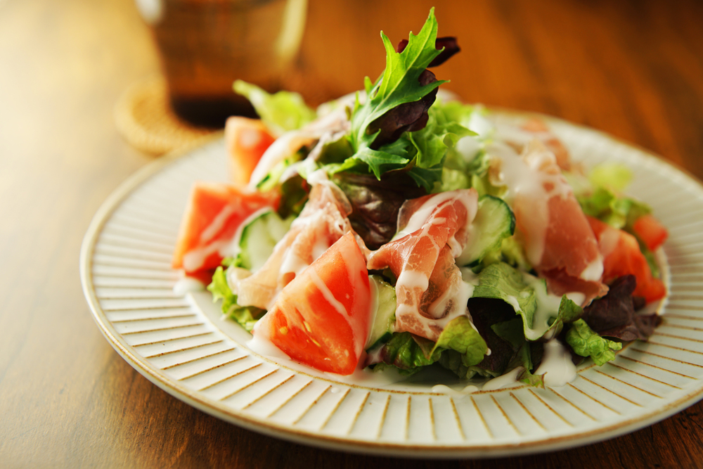 生ハムを使用した手軽に作れるサラダの作り方を紹介します。