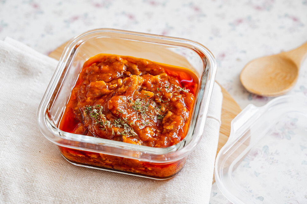 作り置きしたミートソースは冷蔵庫でも保存できます。冷凍より日持ちは短いですが、使いたい料理に使いたい分だけ取り出せるのがメリットです。冷蔵庫で保存する際は粗熱をしっかり取ってからふたをして、菌の繁殖を予防しましょう。色移りや匂い移りが気になる場合は、ガラス製やホーロー製の保存容器を使う方法もあります。