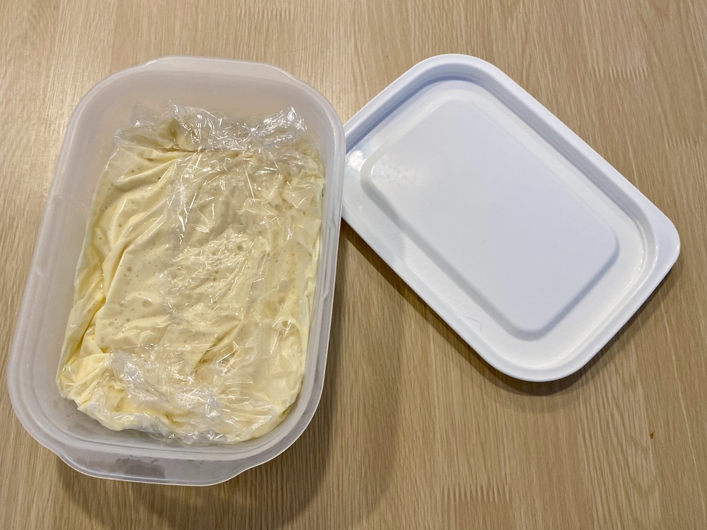 1.生地の入った保存容器を、使う日の前日から冷蔵庫へ移す