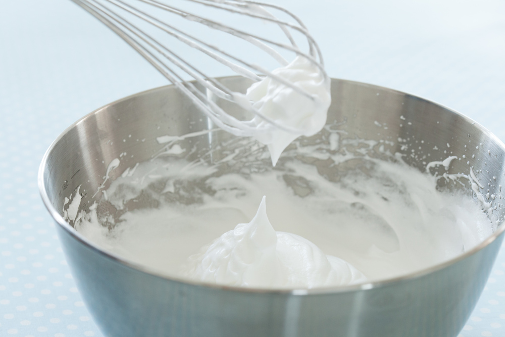メレンゲは、特にお菓子作りによく使います。冷凍により卵白の粘り気が弱くなり空気を取り込みやすいため、電動タイプばかりでなく手動の泡だて器でも泡立ちやすくなります。卵白を長期間にわたり冷凍すると、タンパク質が劣化していき水分が分離して泡立たなくなる恐れがありますので、メレンゲに使う白身の凍結日数は短めにしましょう。