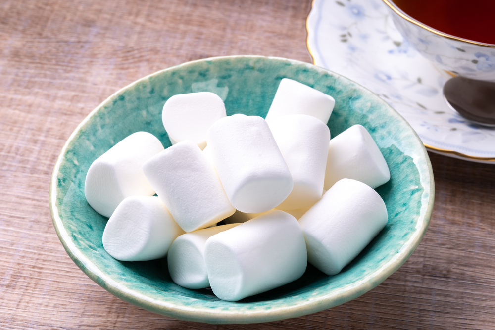 冷凍卵白をメレンゲにして作る口溶けのよいお菓子で、メレンゲをしっかり泡立てることがポイントです。マシュマロを四角の形に作りたい時は、バットに平らにならすように固めるとよいでしょう。