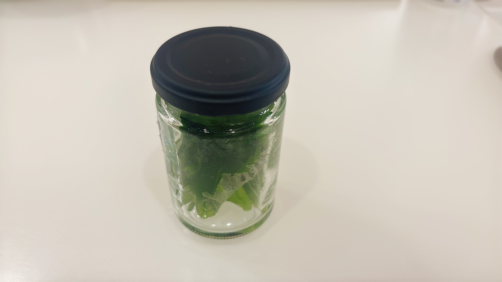 5.大葉の入った瓶に蓋をして、野菜室に入れる