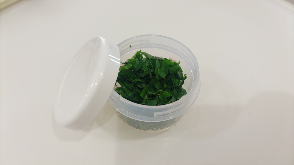3.千切りした大葉を保存容器に入れ、蓋をして冷凍庫で保存する