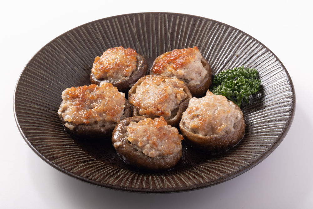 3.しいたけに片栗粉をまぶし、2の具材を6等分にして、しいたけに詰める