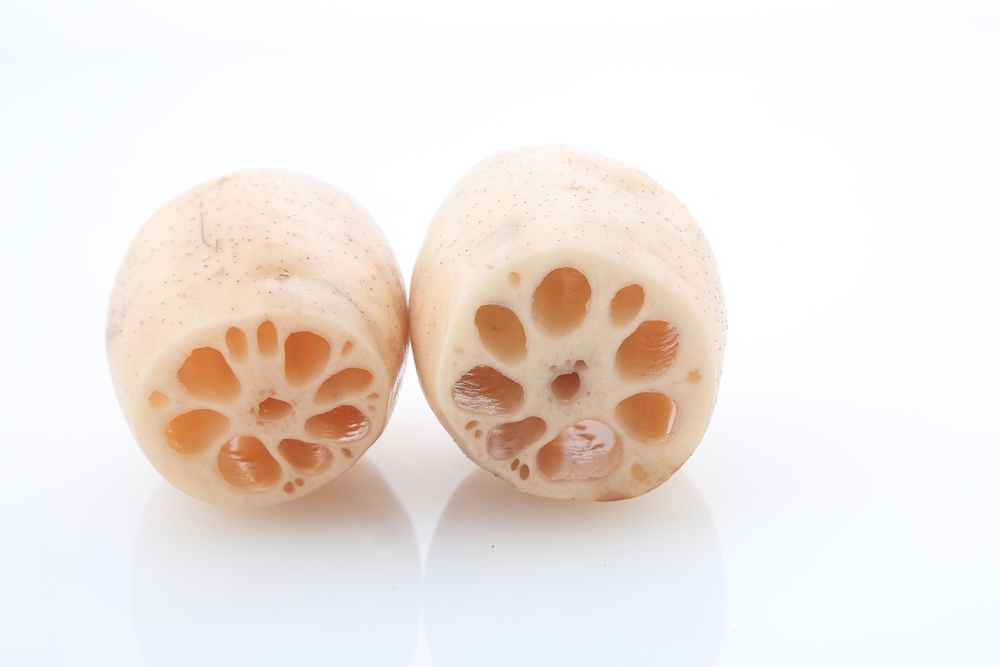 れんこんの穴の内側や表面、切り口に白い粉のような付着物が見られることがあります。これは、れんこんに含まれるでんぷんが表面に現れて固まることが原因で起こるため、食べても問題ありません。