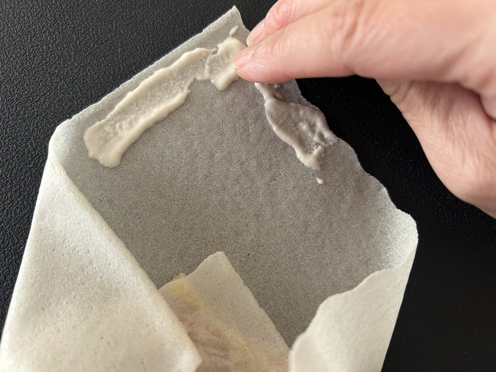3.具材を包むときには、水溶き小麦粉でしっかり糊付けして包む