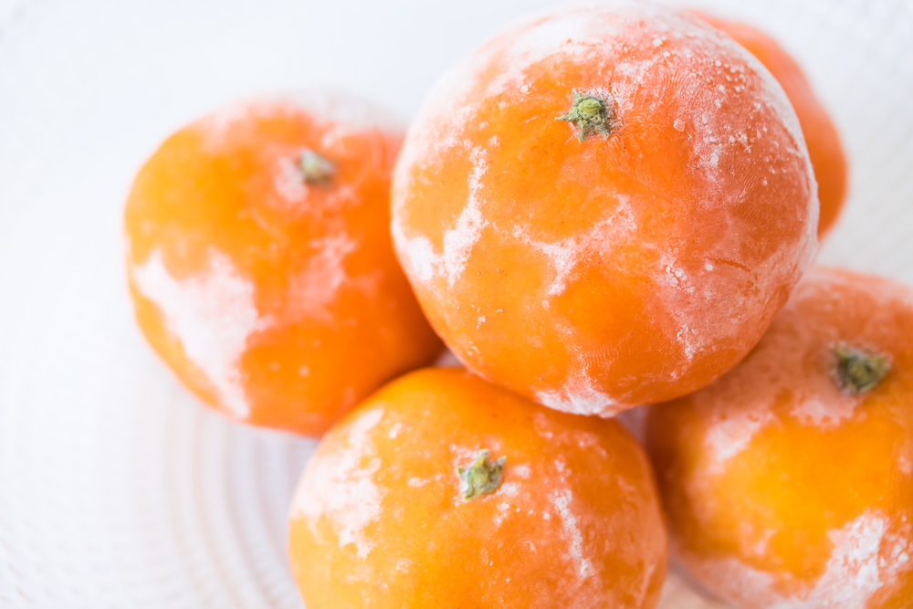 みかんを冷凍する場合は、皮ごと水洗いしてよく水気を拭き取り、金属トレイの上で一晩急速冷凍してください。凍ったみかんは水にくぐらせて再度金属トレイの上で3時間冷凍したら、密閉できる保存袋に入れて冷凍庫で保存しましょう。水にくぐらせることで薄い氷の膜ができ、みかんの乾燥を防ぎます。