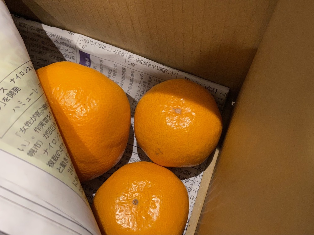 段ボール箱を使う場合も、かごと同様にキッチンペーパーや新聞紙とみかんをミルフィーユ状に二段まで重ねて保存します。キッチンペーパーや新聞紙があると、みかんが呼吸をして出てきた水分を吸収し、適度な湿度が保たれます。段ボール箱のフタは開けたままにし、風通しが良く温度が低い廊下などで保存してください。