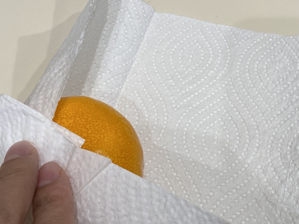 冷蔵庫内は乾燥していて、果物特有のジューシーさがなくなってしまうため、注意が必要です。みかんは1個ずつ、キッチンペーパーまたはラップで包むと乾燥を防げます。包んだみかんは何個かまとめて袋に入れたうえで、ヘタを下にした状態で野菜室で保存してください。
