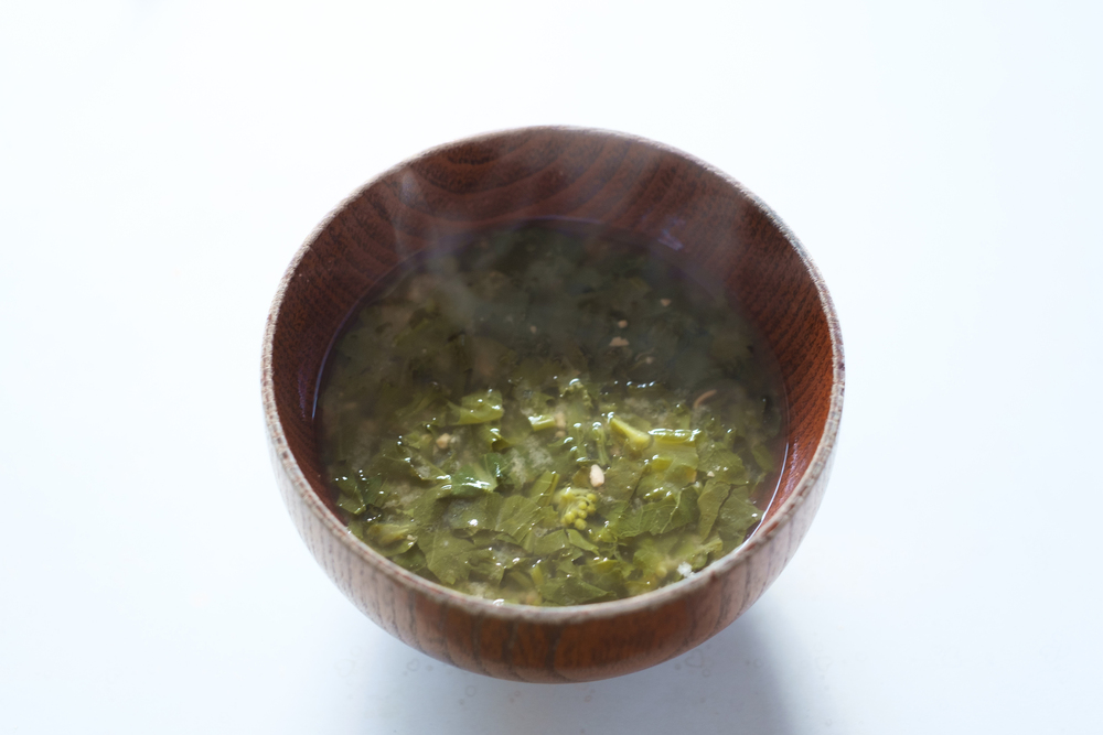 冷凍した大根の葉を使った簡単に作れる味噌汁のレシピです。