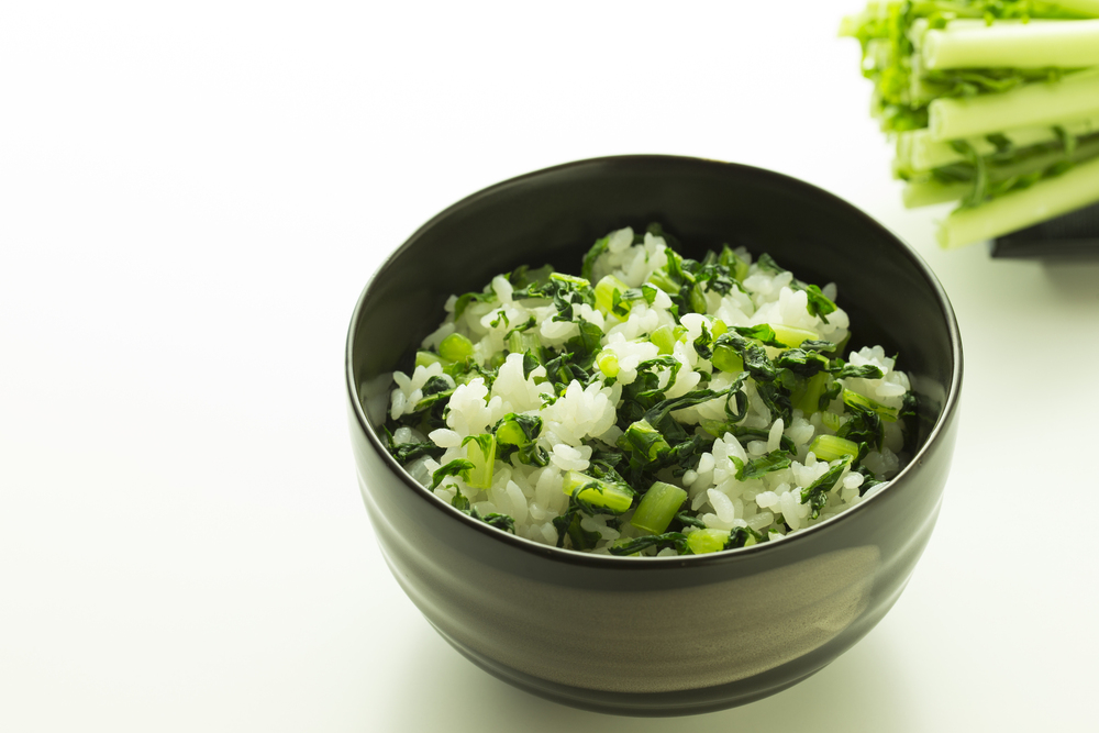 2.温かいご飯に大根の葉を加え、全体を混ぜる