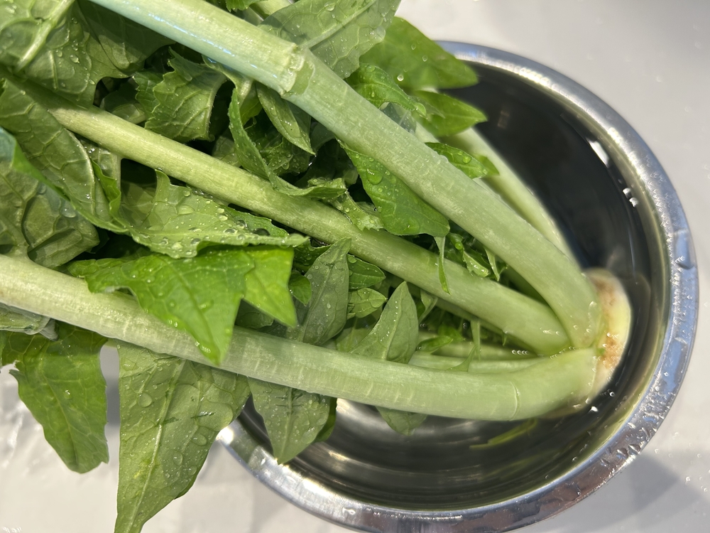 1.大根の葉を水につけ、よく洗う
