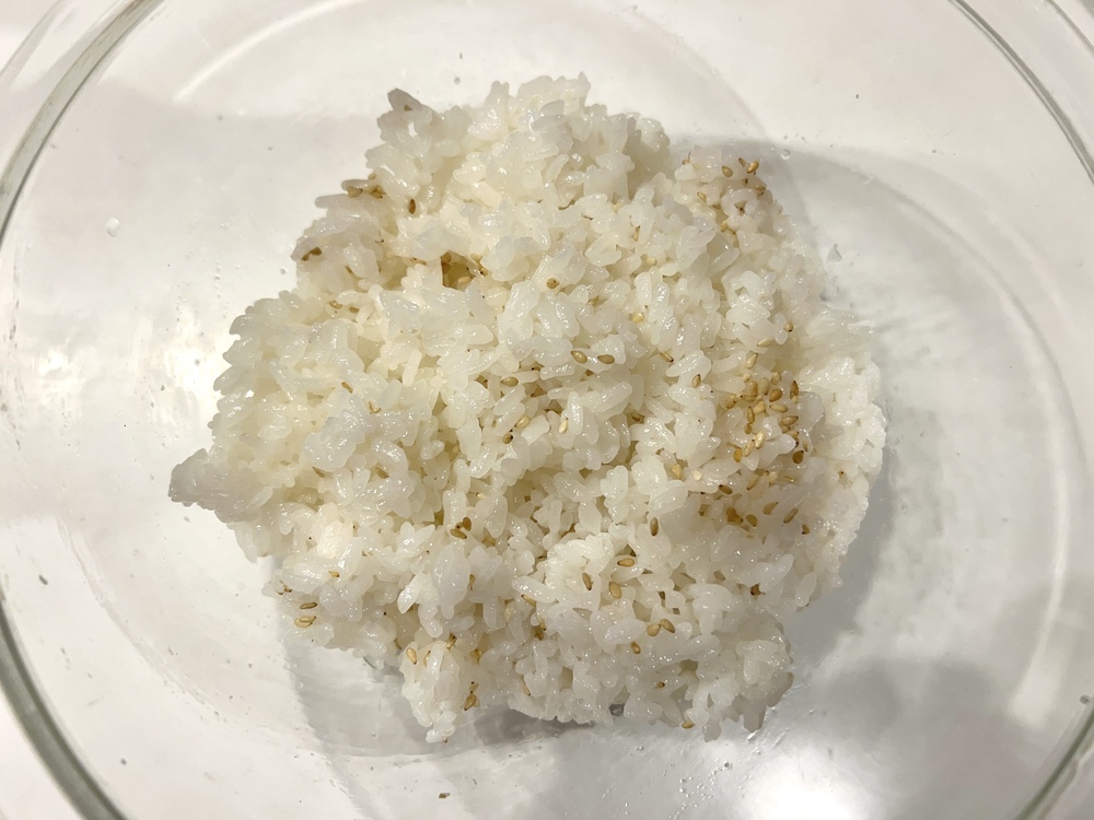 1.ボウルに温かいごはんと塩、白いりごまを入れ混ぜる