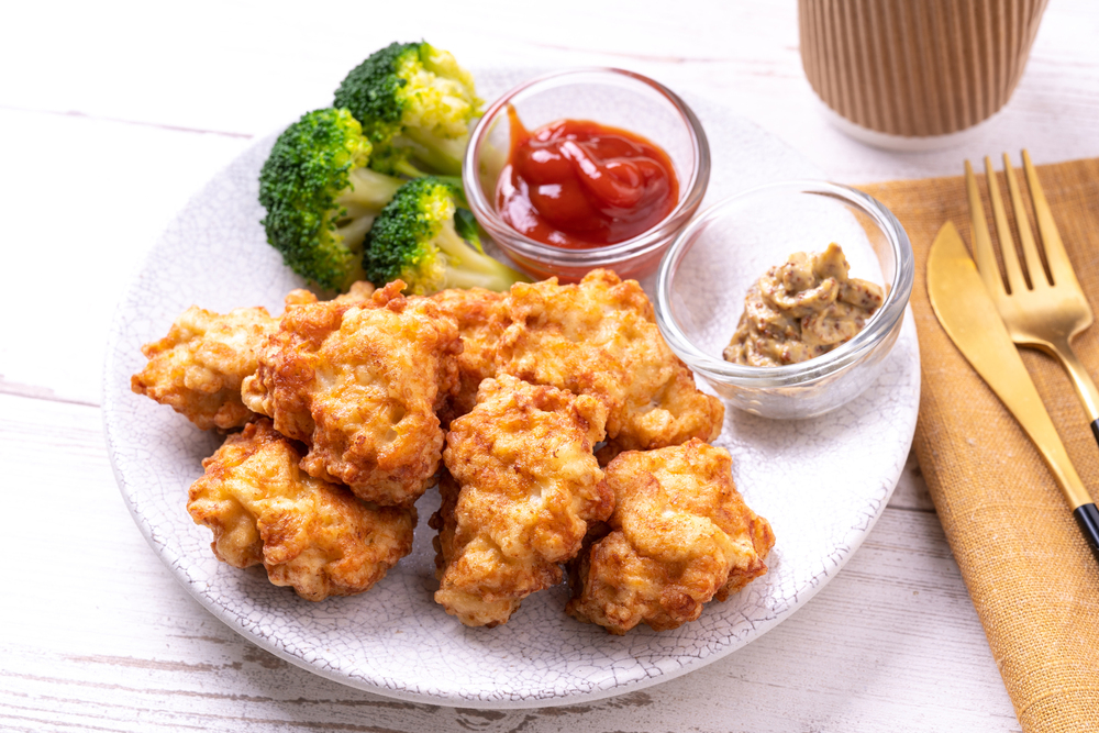 豆腐入りでヘルシーな、柔らかい食感のチキンナゲットです。フードプロセッサーに入れる前に鶏肉は適度な大きさにカットしておきます。フードプロセッサーがない場合は、包丁で細かく刻んでください。肉感が残りますが、それも良いアクセントになります。