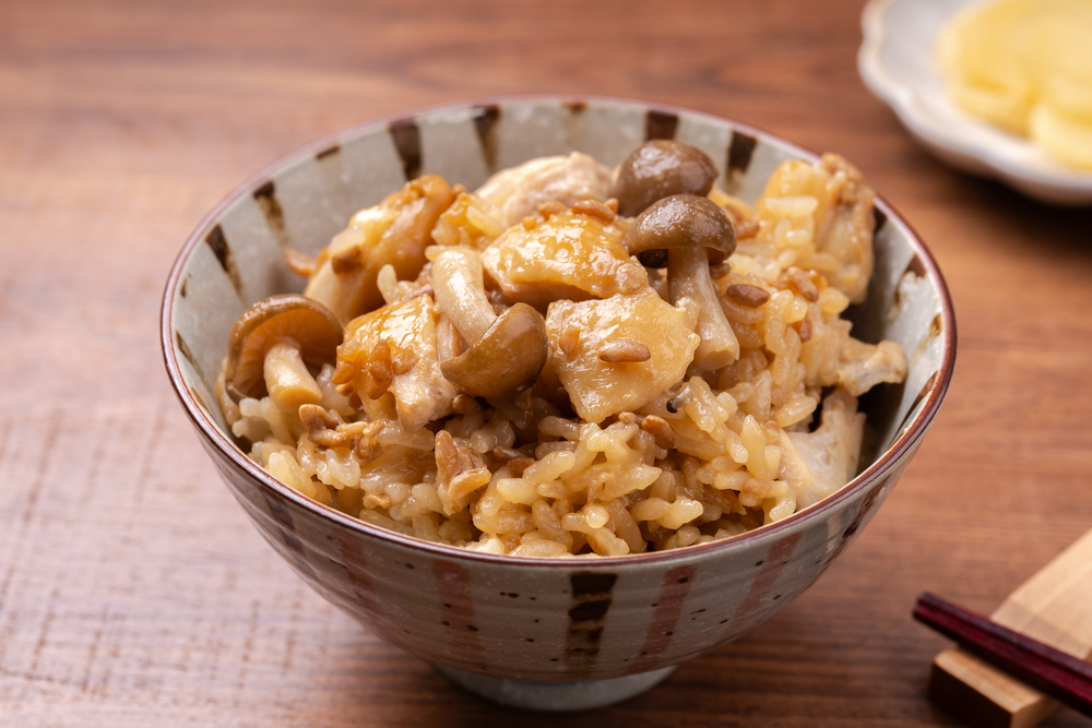 ①鶏肉としめじの炊き込みご飯