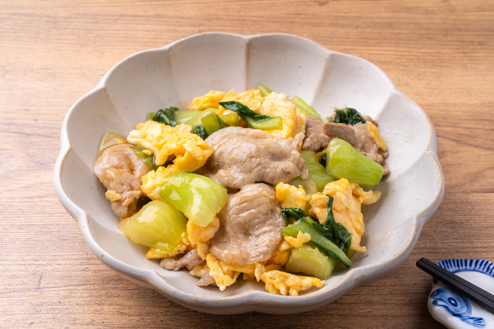 ③青梗菜と豚としめじの卵炒め
