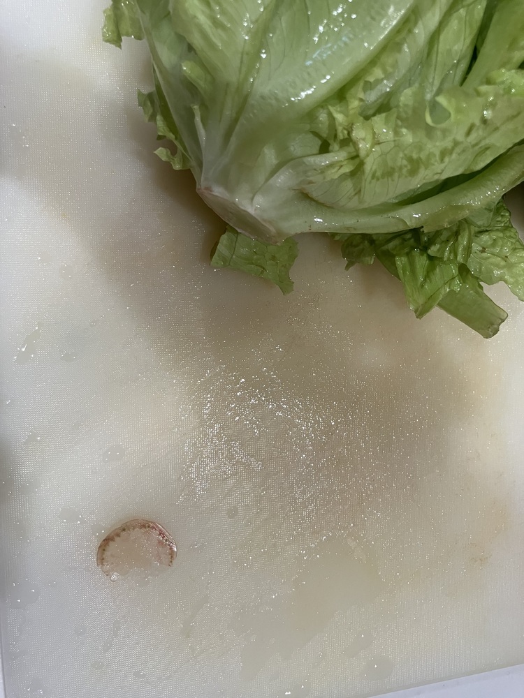 1.サニーレタスの芯に変色や乾燥がある場合は、包丁で切って取り除く