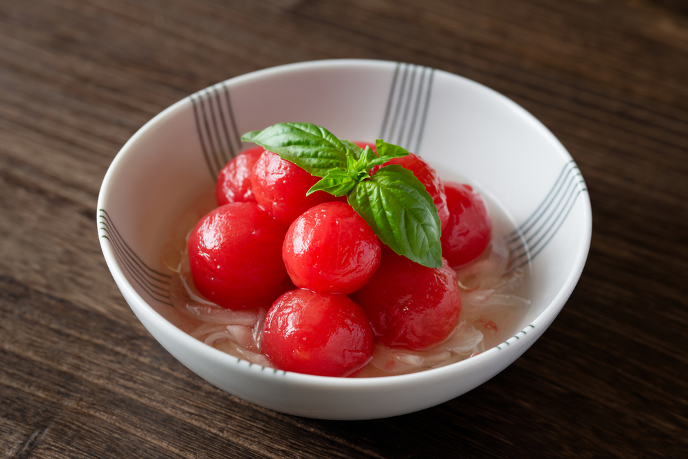 冷凍ミニトマトを生の状態で食べたい時は、半解凍にしてシャーベット状の食感を楽しむ方法もあります。完全に解凍すると水っぽくなるので、常温に5分程度置いておくのがポイントです。包丁が通りにくい場合でも、半解凍するとカットしやすくなります。デザート感覚で楽しめるほか、好みの野菜と合わせてサラダにしても良いでしょう。