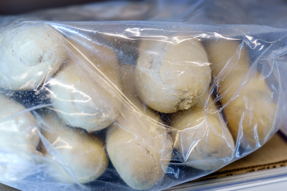 フランスパンをカットして冷凍する際は、1切れずつしっかりとラップで包むと空気が遮断され、乾燥を防ぎ冷凍庫内の匂い移りも抑えられます。ラップで包んだ後は冷凍用保存袋に入れ、空気をできる限り抜いてから密封してください。