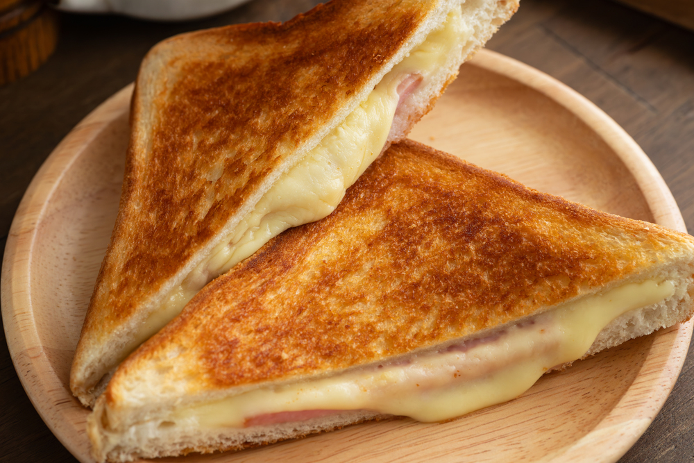 - ①ハムとチーズのホットサンド